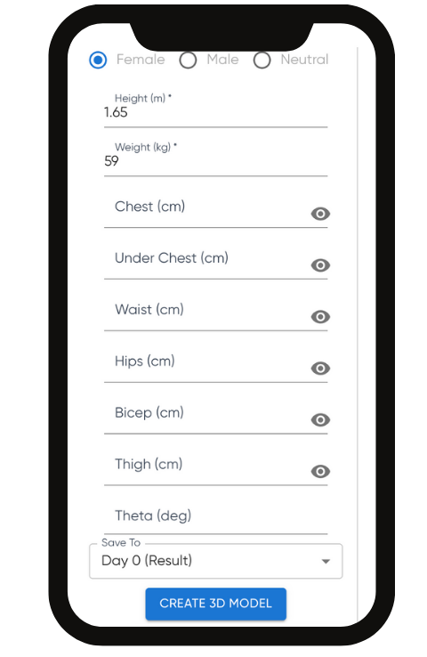 As patients progress, they can log new photos and measurements. The simulator continuously updates their 3D model in real time — helping them see tangible progress and stay motivated.