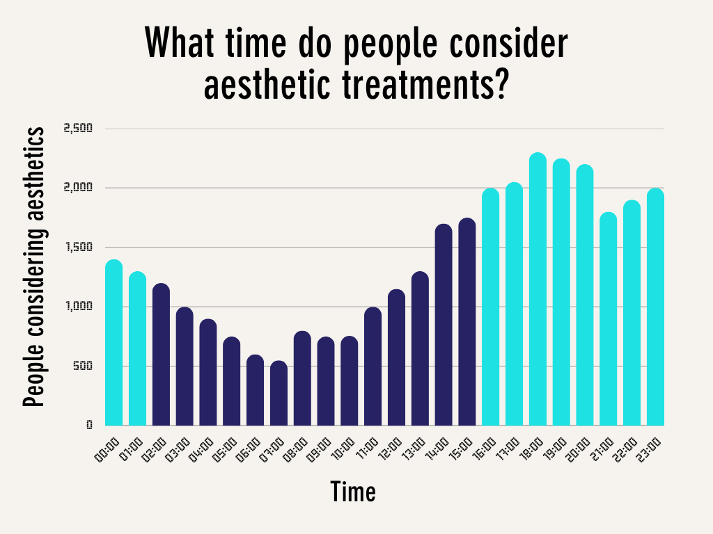 - Googling “Botox near me” or “jawline filler” at 11PM