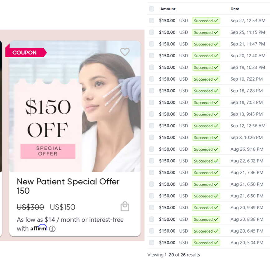 Instead of chasing leads who disappear, our system motivates patients to put down a deposit (typically $150) toward their first treatment. This flips the sales process — patients are now chasing you to redeem their offer, not the other way around.